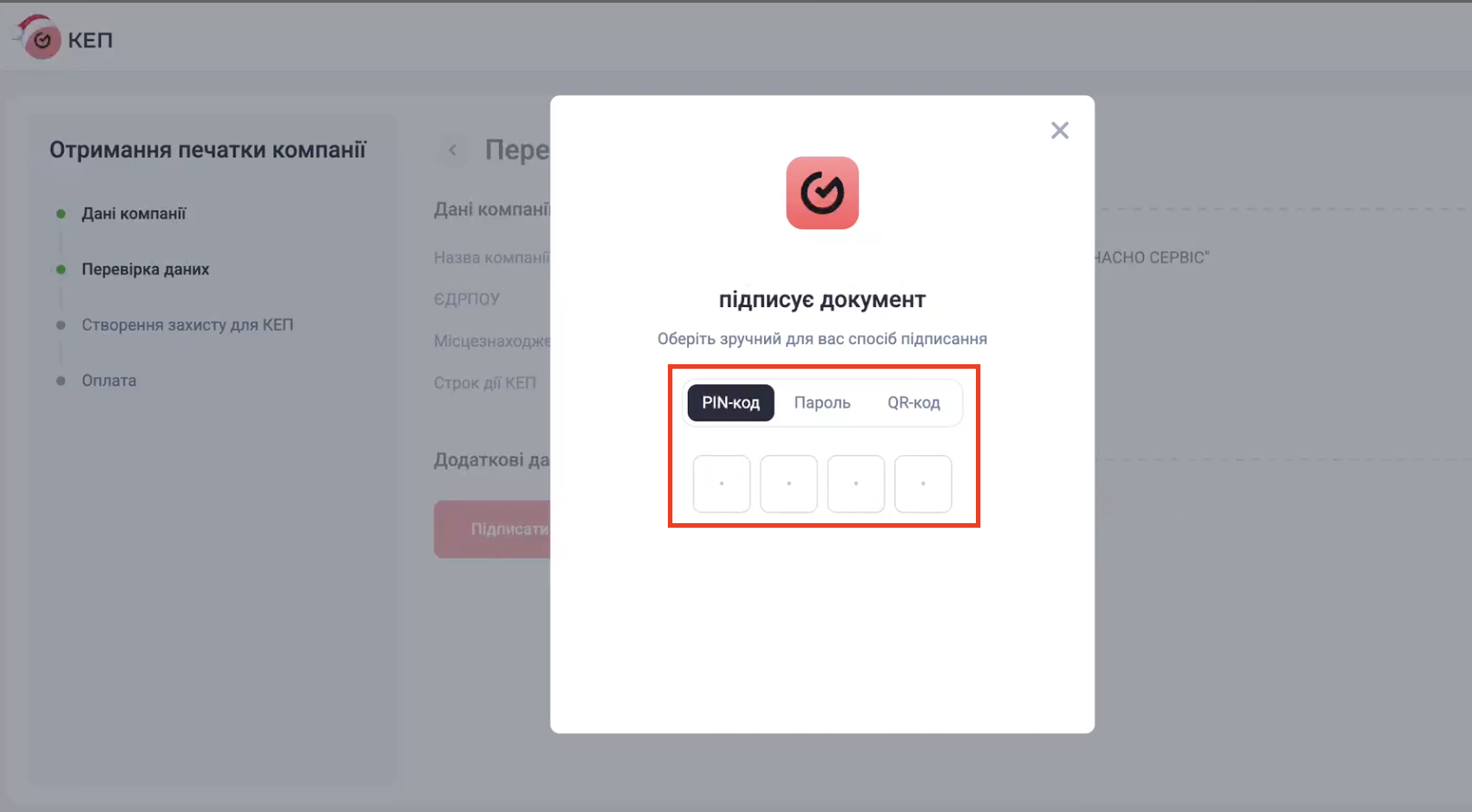 На останньому етапі потрібно оплатити випуск ключа печатки: