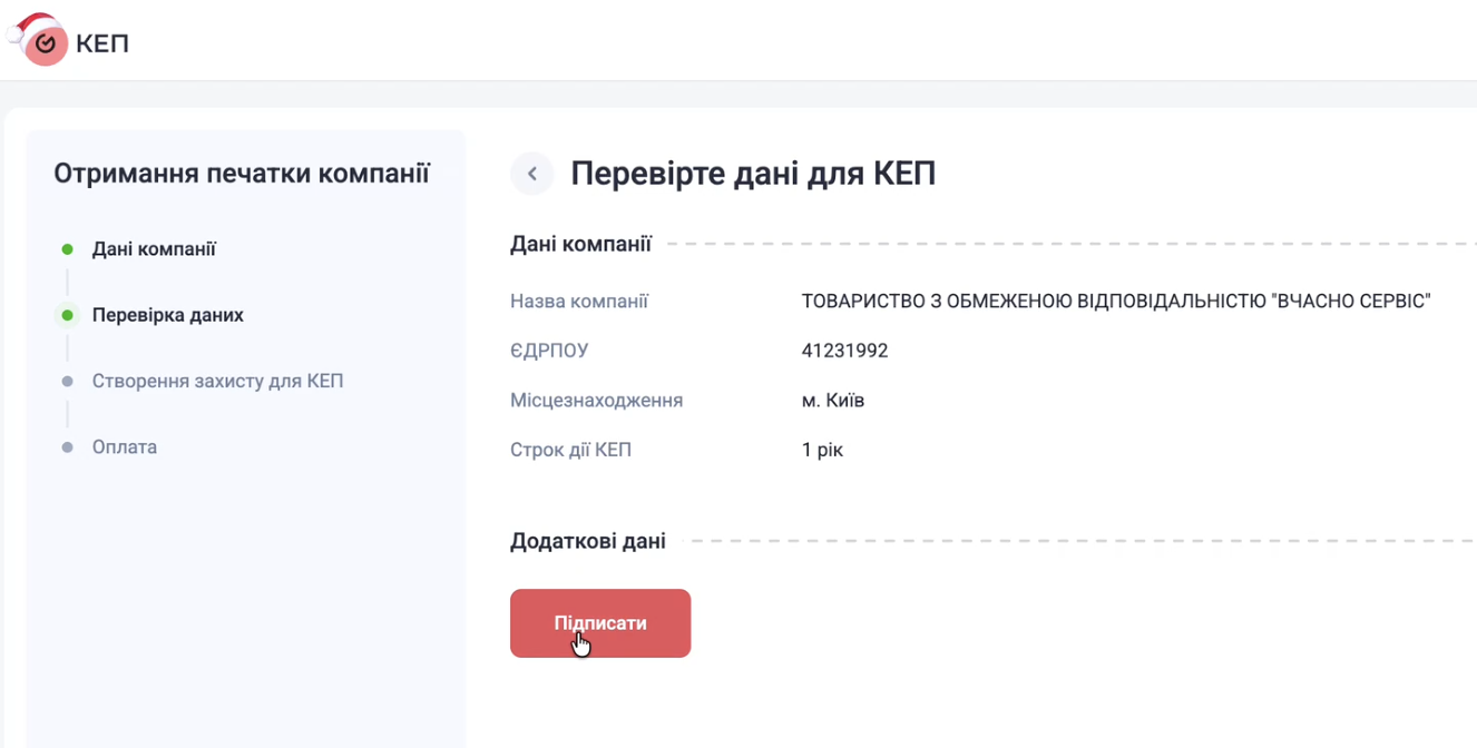Крок 4. Перевірте дані для КЕП і підпишіть