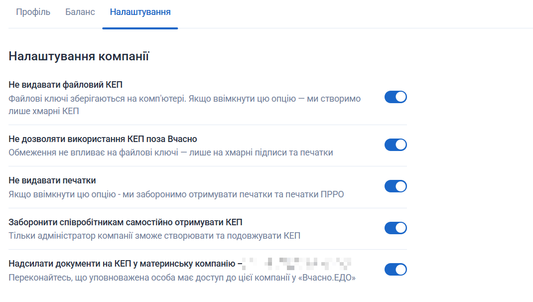 - обмежити використання хмарних підписів співробітників лише в екосистемі Вчасно